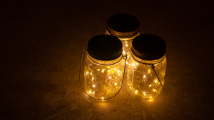 Want to jazz up your new bottle lights? If you’re using clear glass bottles, paint them. Turn on the fairy lights or light the candle inside to see design glow!